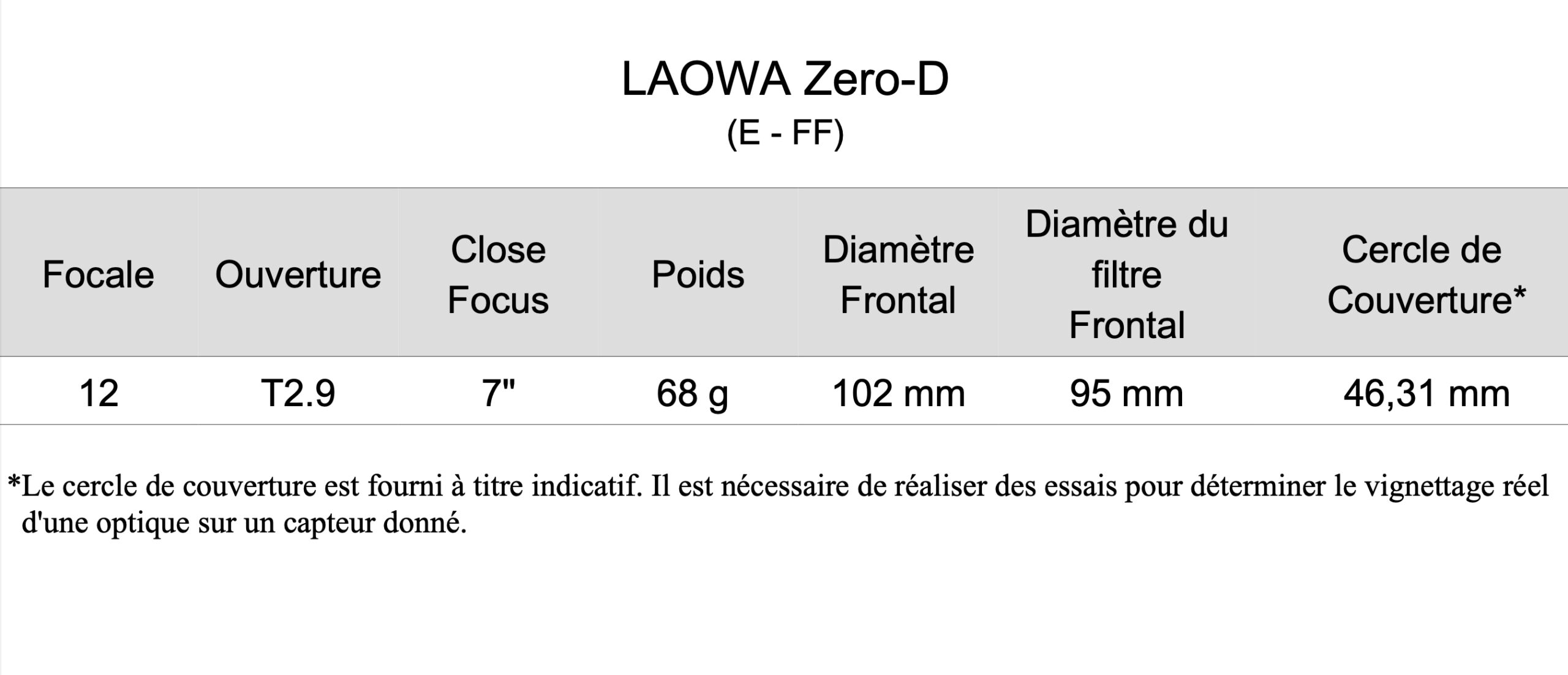 LAOWA 12mm Zero-D Cine – T 2.9 – Monture E – FF – Ø102 mm